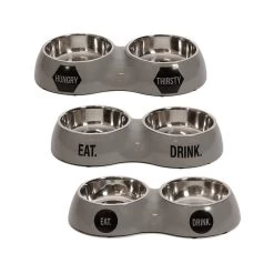 Deze voerbak uit de Stone Grey collectie van 51 Degrees North is vrolijk met zijn leuke opschriften en is onderhoudsvriendelijk. De eetkommen zijn verkrijgbaar met verschillende opschriften, in verschillende kleuren en maten, voor kleine of grote eters. Omdat het ook handig kan zijn om water en eten bij elkaar te zetten, zijn deze eetkommen ook beschikbaar in enkele en dubbele eetkommen.