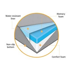- Het ligbed is gevuld met regulier schuim met daarop een laag memory foam