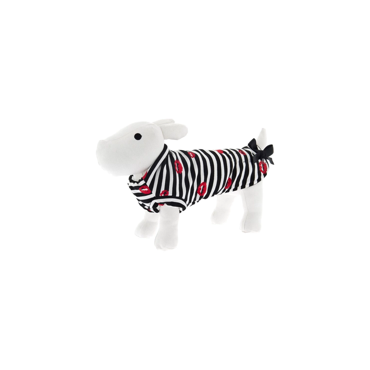 Met de Jumper Kiss ziet uw hond er onwijs snoezig uit! Dit lieflijke hondentruitje van 100% katoen is zwart/wit gestreept en voorzien van een print van rode kusjes. Het truitje van Ferribiella heeft een stijlvolle boothals en is uitgerust met een schattig strikje.