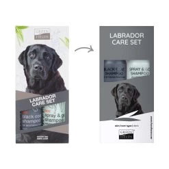 Wat doet u om de vacht van uw zwarte of donker gekleurde hond mooi te houden? Met de Labrador Care Set van Greenfields wordt het een eitje! Deze verzorgingsset bestaat uit een shampoo voor de donkere vacht en een handige droogshampoo voor onderweg. De Greenfields Black Coat Shampoo bevat ingrediënten die de natuurlijke donkere kleur van de vacht versterken. Daarnaast draagt het bij aan een glanzende, gezonde en zachte vacht. De Greenfields Spray & Go is een droogshampoo ter ondersteuning van een frisse, schone vacht. Omdat er geen water voor benodigd is, is dit product perfect voor onderweg!