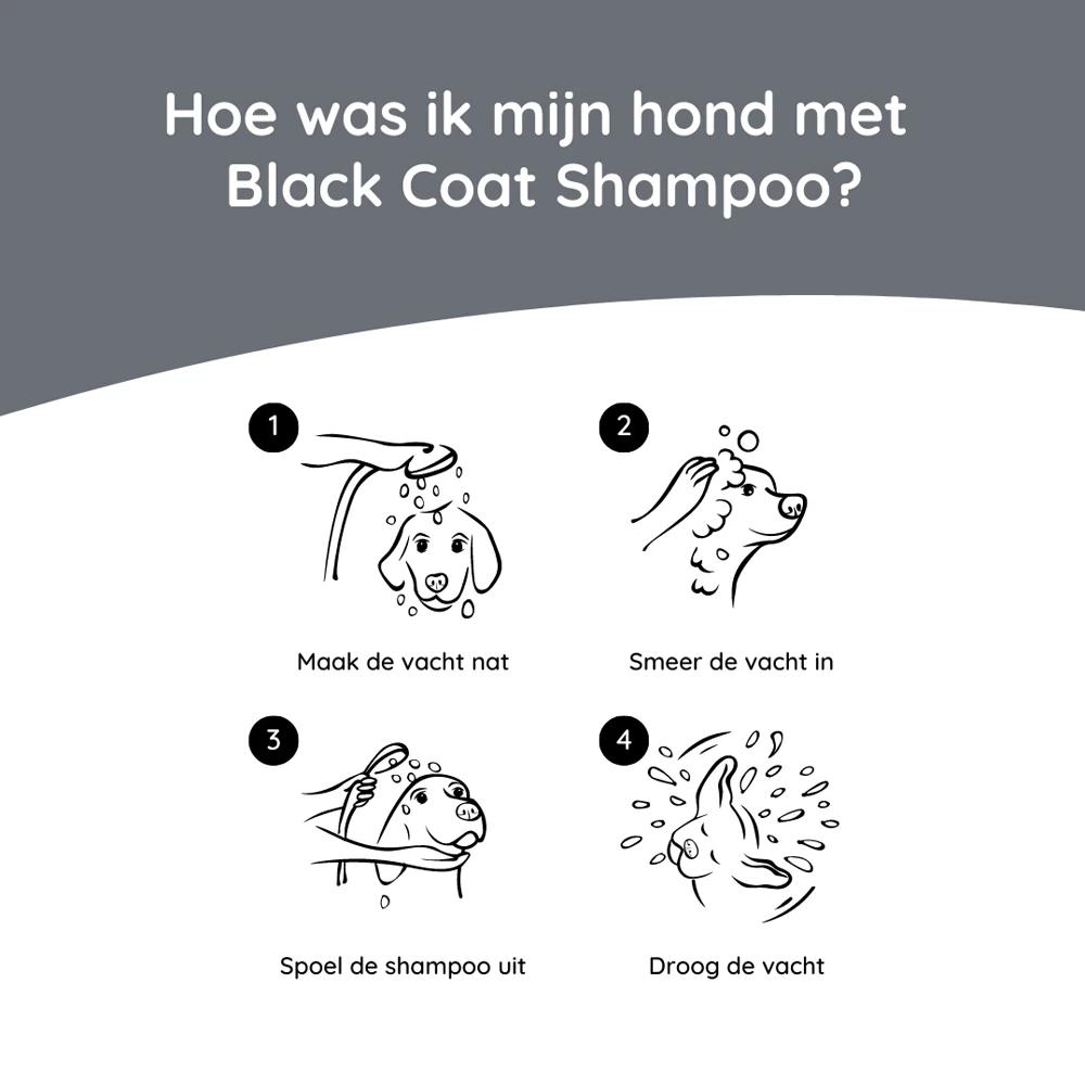 - Shampoo met ingrediënten ter ondersteuning van de natuurlijke zwarte of donkere vachtkleur