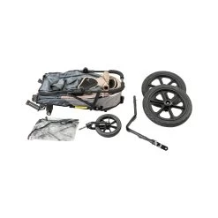De trailer heeft een dubbel voorgaasje die beide onafhankelijk van elkaar open kunnen waardoor uw hond op een veilige manier tijdens een ritje zijn kop naar buiten kan steken. Daarnaast is voldoende ventilatie gegarandeerd! De duwstang is in hoogte maximaal verstelbaar tot 106,5 cm.