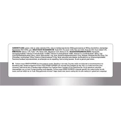 Granen, oliën en vetten (zalmolie 0,5%), vlees en dierlijke bijproducten (500 mg glucosamine en 500 mg chondroïtine), plantaardige bijproducten (FOS 0,05%), gist.