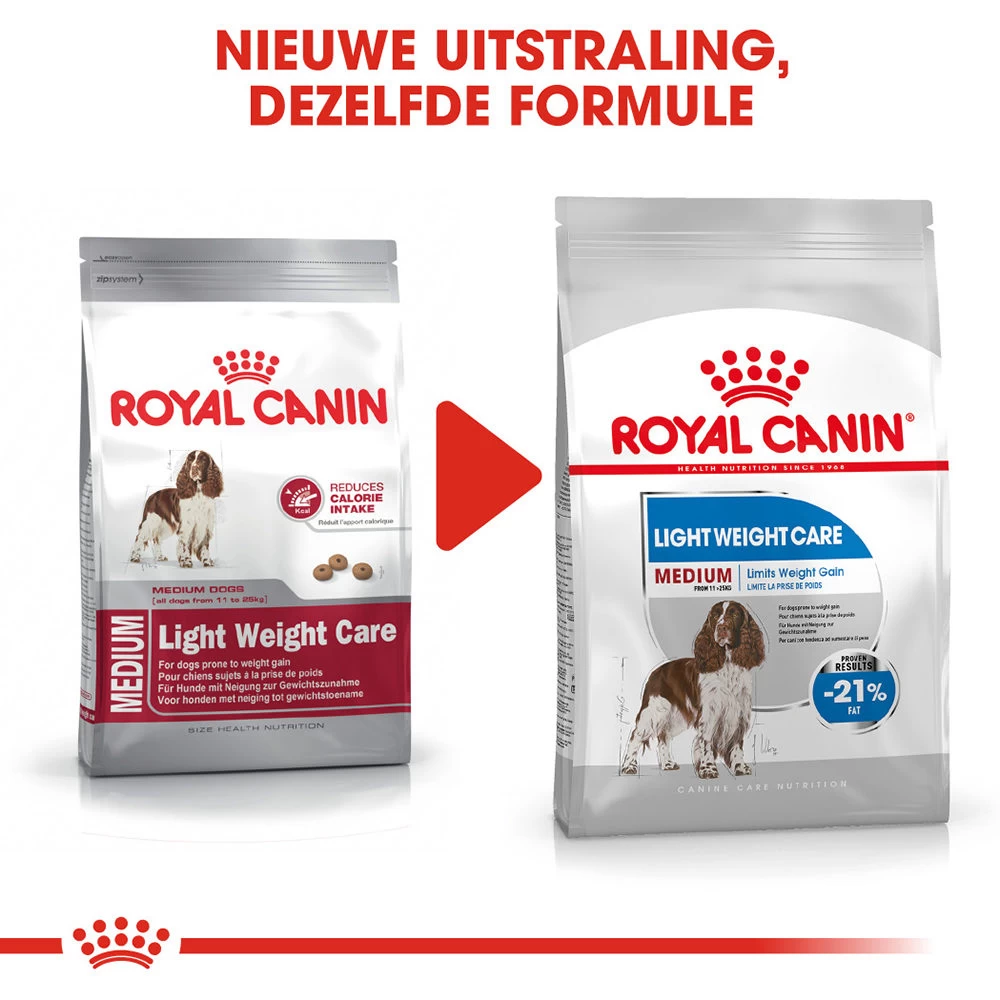De Royal Canin Medium Light Weight Care gaat perfect samen met de natvoeding Royal Canin Light Weight Care.