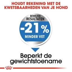 Een gezond gewicht is belangrijk voor de gezondheid van uw hond en zorgt ervoor dat uw hond fijn kan spelen en bewegen. Medium Light Weight Care van Royal Canin helpt uw hond een gezond gewicht te behouden door een verlaagd energiegehalte. Daarbij zorgen vezels in de voeding ervoor dat de hond een vol gevoel krijgt, zodat hij geen honger krijgt. Tot slot zorgt het aangepaste eiwitgehalte in de voeding ervoor dat de spiermassa van uw hond ondersteunt wordt.