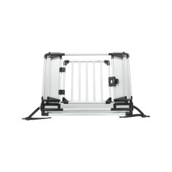Met het achterhek kan de gehele kofferbak als ligoppervlak gebruikt worden door uw hond. De bodemplaat is voorzien van klittebandpootjes, waardoor het gehele hek stevig op zijn plek blijft staan. De slipvaste ligmat is wasbaar in een wasmachine op maximaal 30 graden Celsius. Het Trixie Universeel Achterhek is gemaakt van aluminium, hardboard en kunststof materialen en wordt geleverd met vier bevestigingshaken. Ook heeft het deurtje een sleuf voor een hangslot, het slot zelfs is niet inbegrepen. De breedte is aan te passen van 94 tot 114 centimeter, de hoogte is 69 centimeter en de diepte is 53 centimeter. Kijk uiteraard goed naar de afmetingen van uw kofferbak en controleer of het geheel past. Het hek is geschikt voor de meeste hatchbacks, stationwagons en SUV’s.