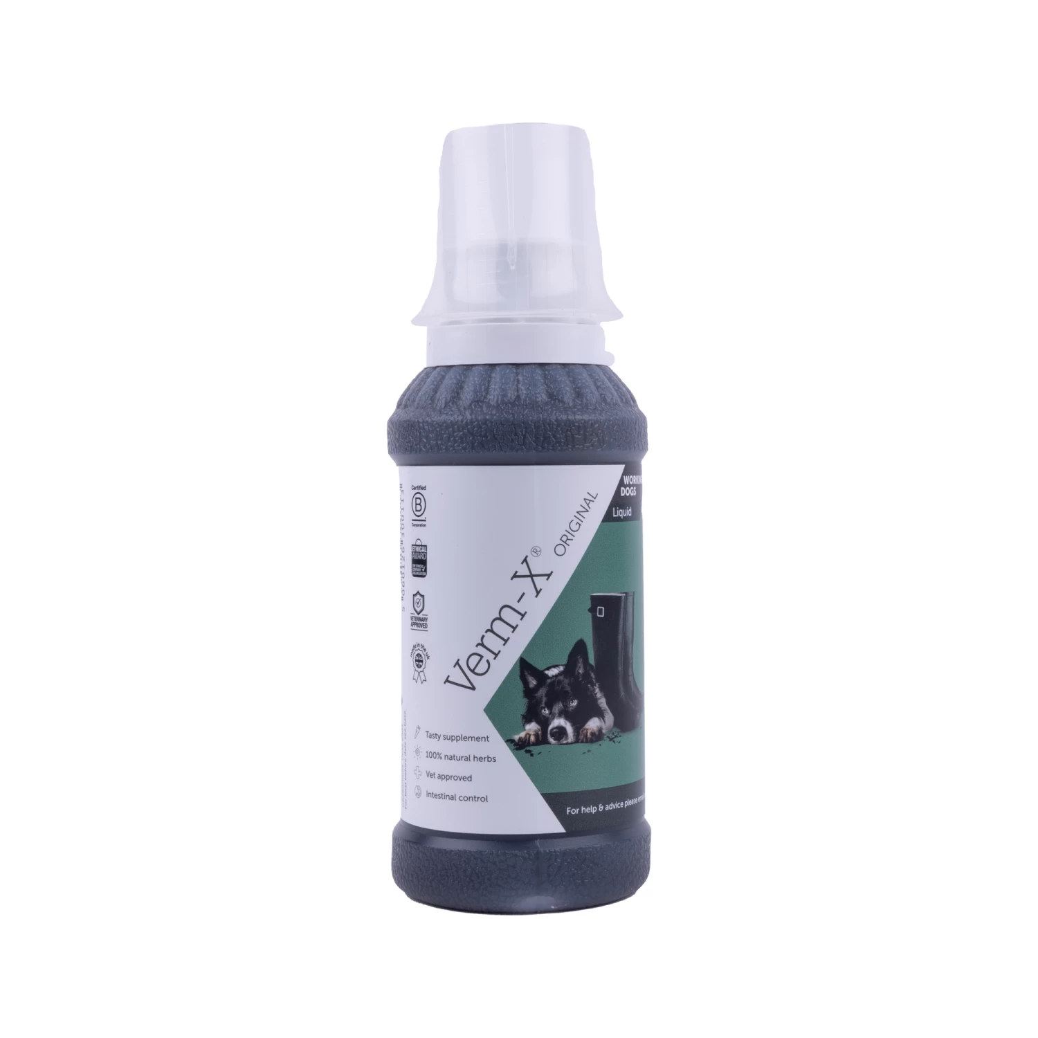 Verm-X vloeibaar voor honden is een maandelijkse 3-daagse kuur om toe te voegen aan het voer. De vloeibare variant van Verm-X voor honden is ideaal voor gebruik door kennelhouders en voor eigenaren van werkhonden. Alle Verm-X vloeibaar verpakkingen worden geleverd met een gratis handig maatbekertje.